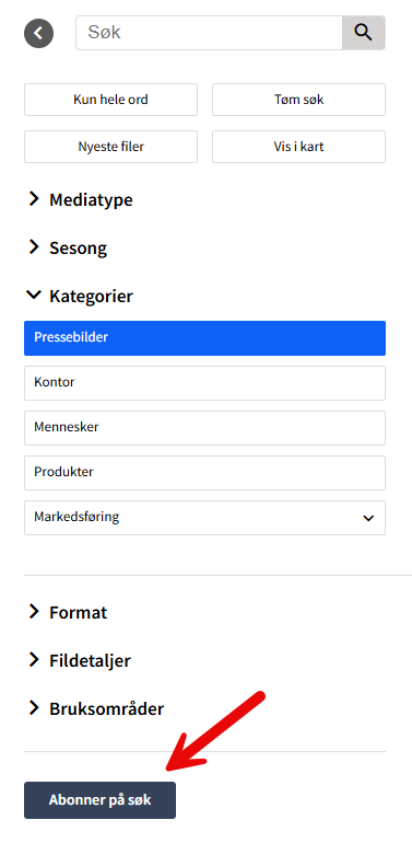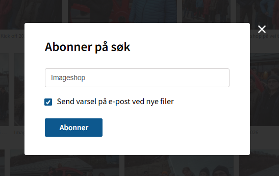 I Imageshop kan alle brukere abonnere på en kategori eller et søk for å få varsling på e-post når det lastes opp nye filer som matcher søket man har lagret.