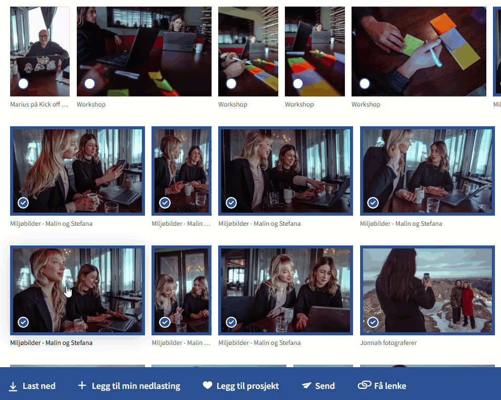 • For å velge eller fjerne et enkelt bilde fra utvalget kan du holde inne "Ctrl" og klikke på filen.
